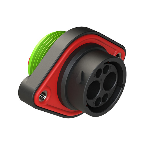 6 Position Panel Mount Receptacle, Pin, Shell Size 18, Normal Diameter Seal (Green Adapter), Wide Thread Adapter